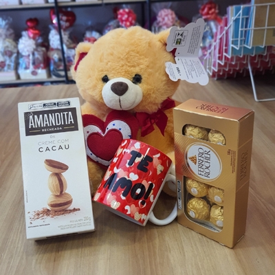 Declare seu amor com um presente doce, elegante e cheio de significado! O Kit Te Amo é composto por uma caneca personalizada com a frase “Te Amo”, uma caixa de bombons Ferrero Rocher — sinônimo de sofisticação e sabor — e Amanditas, que derretem na boca com seu recheio cremoso e casquinha crocante. Uma combinação perfeita para surpreender quem você ama com carinho e bom gosto.